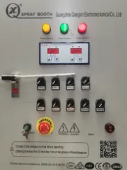 | สวิตช์สำหรับทาสี อบ สวิตช์ไฟ ไฟแสดงการพัง สวิตช์ไฟ สวิตช์หยุดฉุกเฉิน (หันหน้าออกบูธระบบควบคุมอยู่ด้านขวา) |